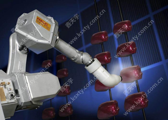 噴涂機器人又叫噴漆機器人(spray painting robot), 是可進行自動噴漆或噴涂其他涂料的工業機器人。噴漆機器人主要由機器人本體、計算機和相應的控制系統組成,液壓驅動的噴漆機器人還包括液壓油源,如油泵、油箱和電機等。多采用5或6自由度關節式結構,手臂有較大的運動空間,并可做復雜的軌跡運動,其腕部一般有2~3個自由度,可靈活運動。較先進的噴漆機器人腕部采用柔性手腕,既可向各個方向彎曲,又可轉動,其動作類似人的手腕,能方便地通過較小的孔伸入工件內部,噴涂其內表面。噴漆機器人一般采用液壓驅動,具有動作速度快、防爆性能好等特點,可通過手把手示教或點位示數來實現示教。噴漆機器人廣泛用于汽車、儀表、電器、搪瓷等工藝生產部門。