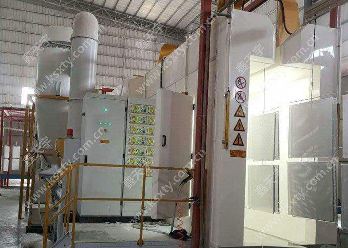 這是一套三明治大旋風(fēng)的快速換色噴粉系統(tǒng),主要適應(yīng)用戶大批量、多顏色的產(chǎn)品噴涂需要。